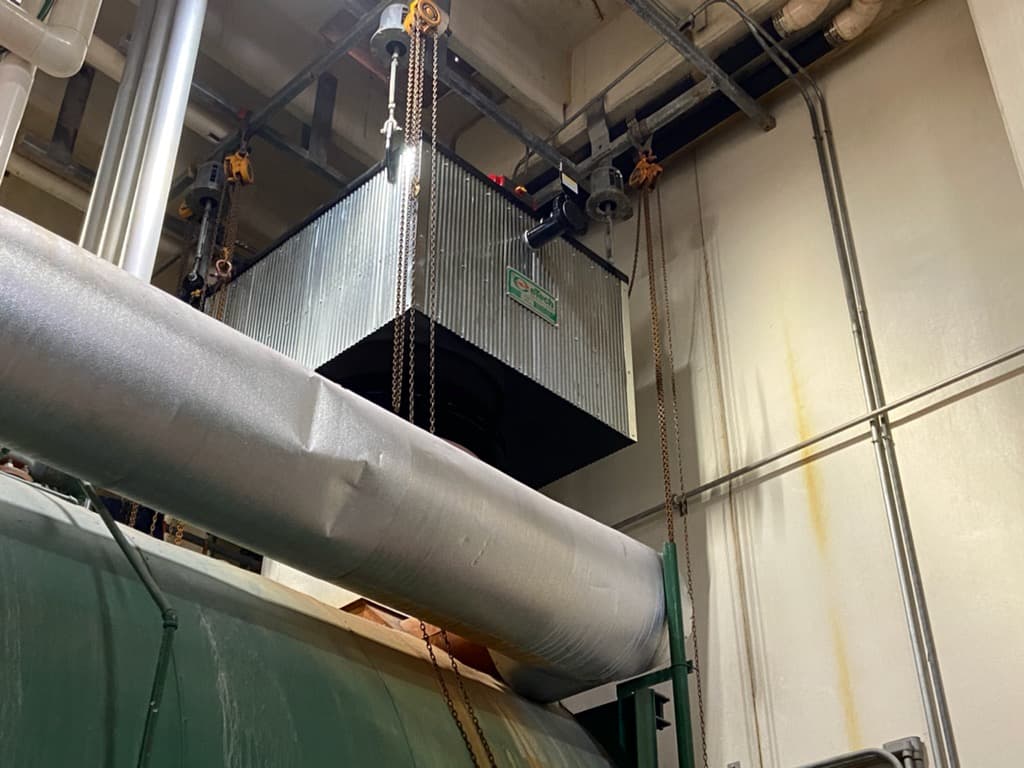 4. Economizer is installed on boiler and stack is reattached.