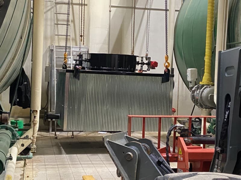 4. Economizer is installed on boiler and stack is reattached.