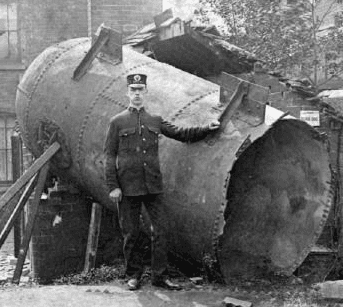 A 5 ton boiler that caused the collapse of a prominent ironworking factory in 1906 when it exploded.
