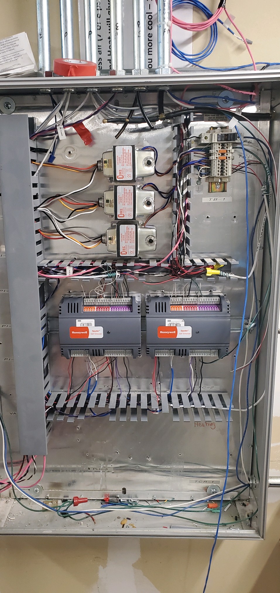 Rasmussen Mechanical replaced existing pneumatic controls with Honeywell electronic controls and sensors. Old pneumatic valves were replaced with electronic actuators. This controlled an AHU, 8 exhaust fans, 2 flow control units, a chiller and water pumps, as well as 8 VAV zones in the hospital covering the OR and ER. The upgraded system has a fully functional front end with alarming and trending capabilities and startup and commissioning of all units was completed by our controls team.