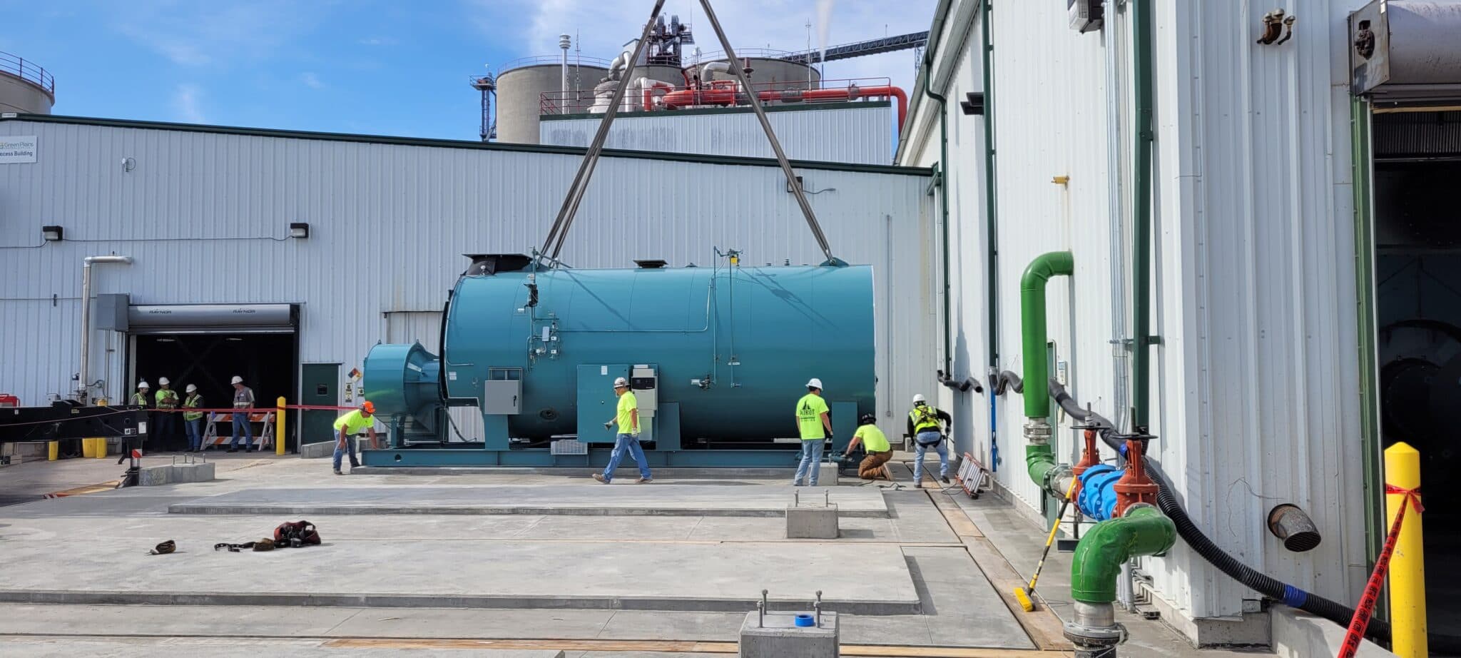 Rasmussen Mechanical Services successfully completed a turnkey boiler and Condex heat recovery installation for Green Plains Central City in Central City, Nebraska. The project involved transporting three boilers from offsite storage to the facility using specialized trucks and cranes, setting them in place, and upgrading their burner controls and flame safeguard systems with Auto Flame Mk-8 to match the existing Superior boiler controls. Our team fabricated and installed all required steam, feedwater, blowdown, gas, vent, and relief piping—complete with supports, insulation, and jackets—to integrate the new boilers seamlessly into the existing system.