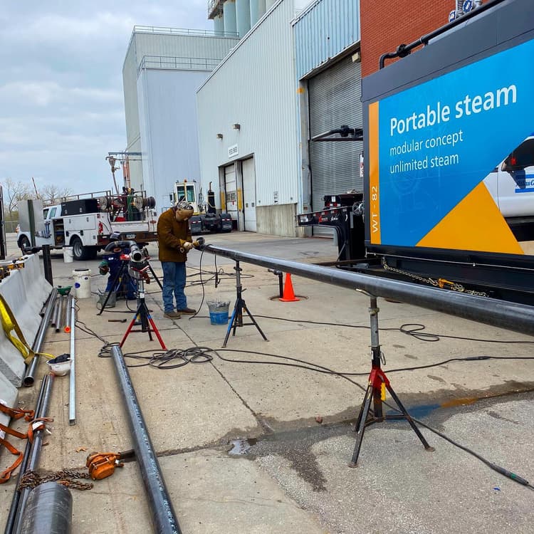 Installing steam, natural gas, and feedwater lines to tie into the plant’s existing connections outside the building