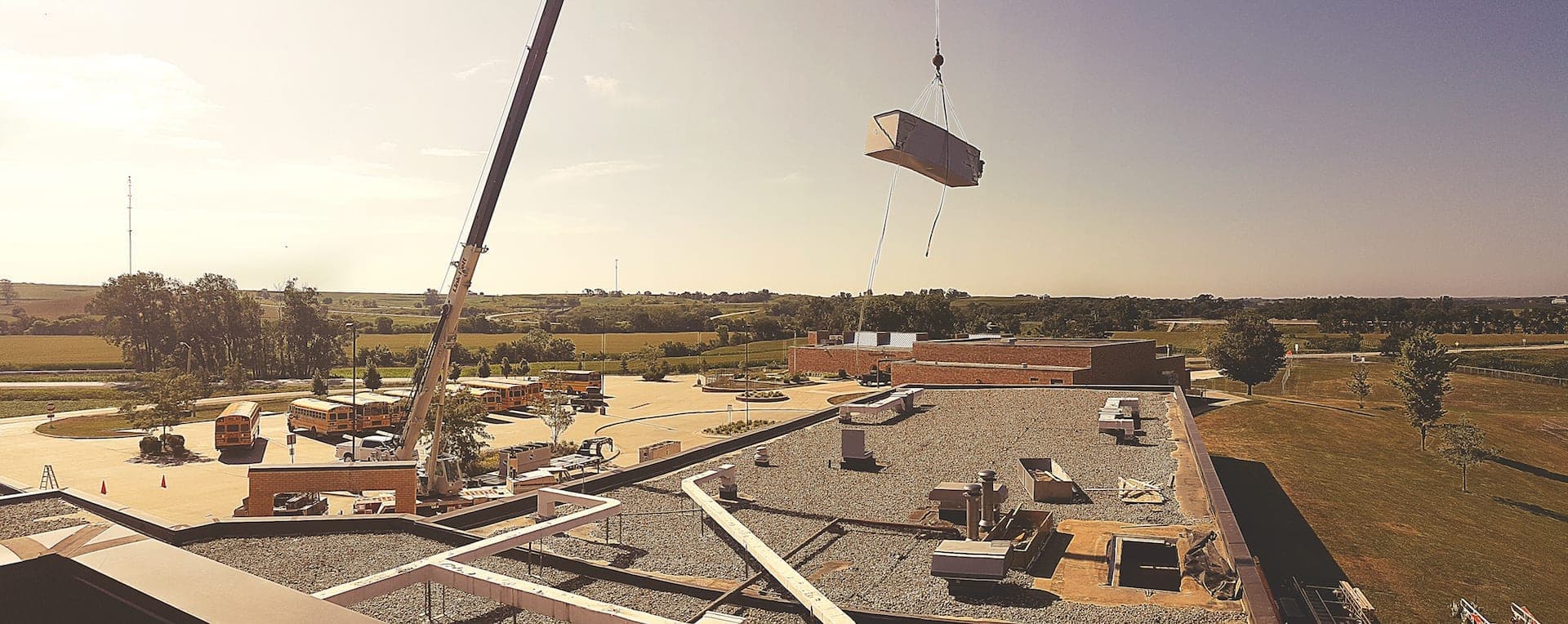 The existing fluid cooler at Tri-Center Schools was failing due to age and corrosion. Rasmussen Mechanical Services was tasked with preparing a replacement solution that would increase the life expectancy of the new unit and non-invasive installation. To ensure a longer life for the equipment, RMS provided a fluid cooler with a corrosion bonding agent. To keep modifications to the building and landscape minimal, RMS opted to remove and install the fluid cooler through a small opening in the roof. This method of installation reduced the amount of labor needed to complete the project and resulted in savings for the school.