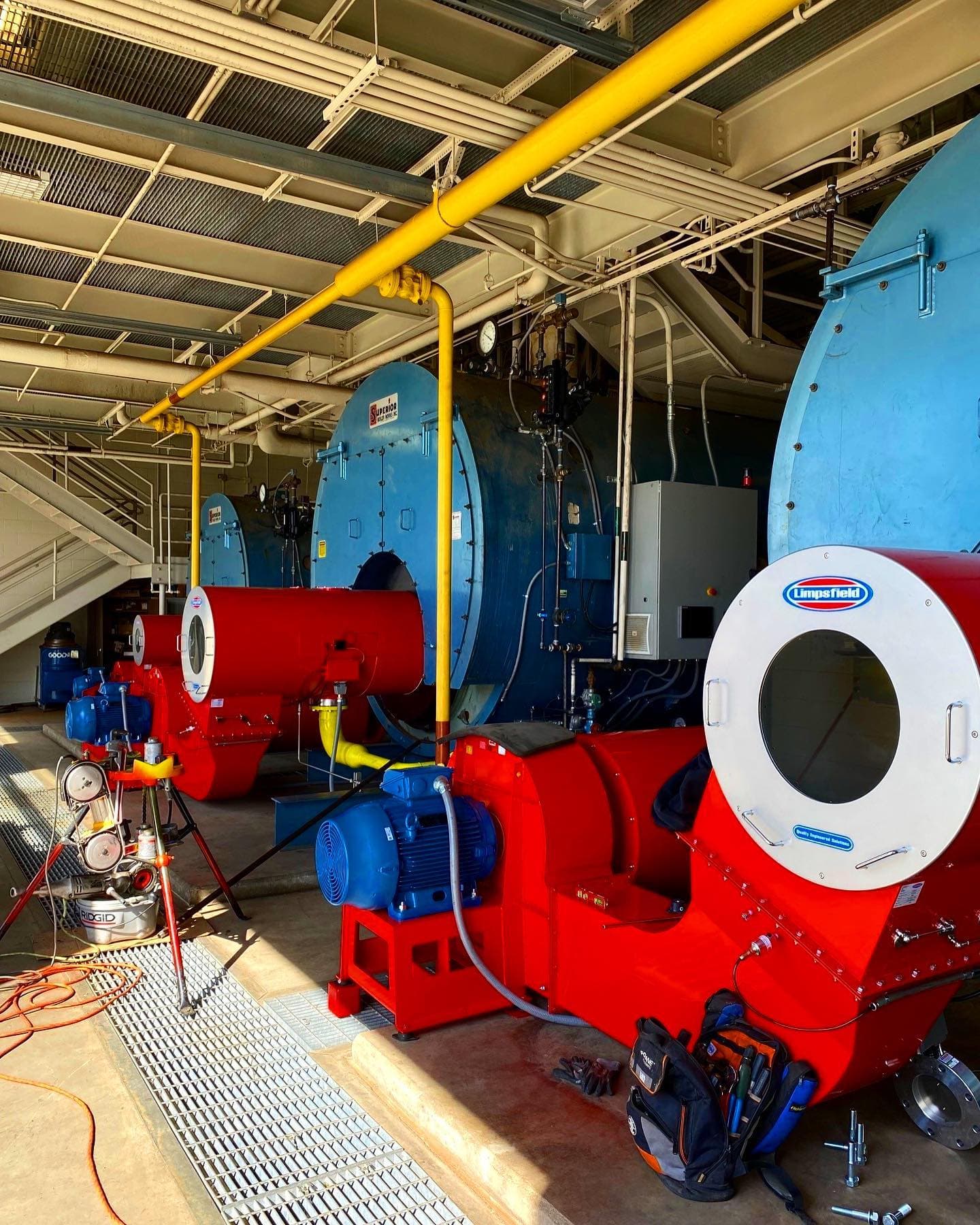 Rasmussen Mechanical Services completed a triple burner retrofit for the University of Nebraska at Kearney’s central plant. The project involved the removal and disposal of existing Webster burners, burner plates, refractory cones, and associated materials. Two new Limpsfield LCN123 (37.8MBTUH) natural gas burners and one LCN63 burner were installed, along with new adapter plates, refractory cones, and updated wiring and gas piping.