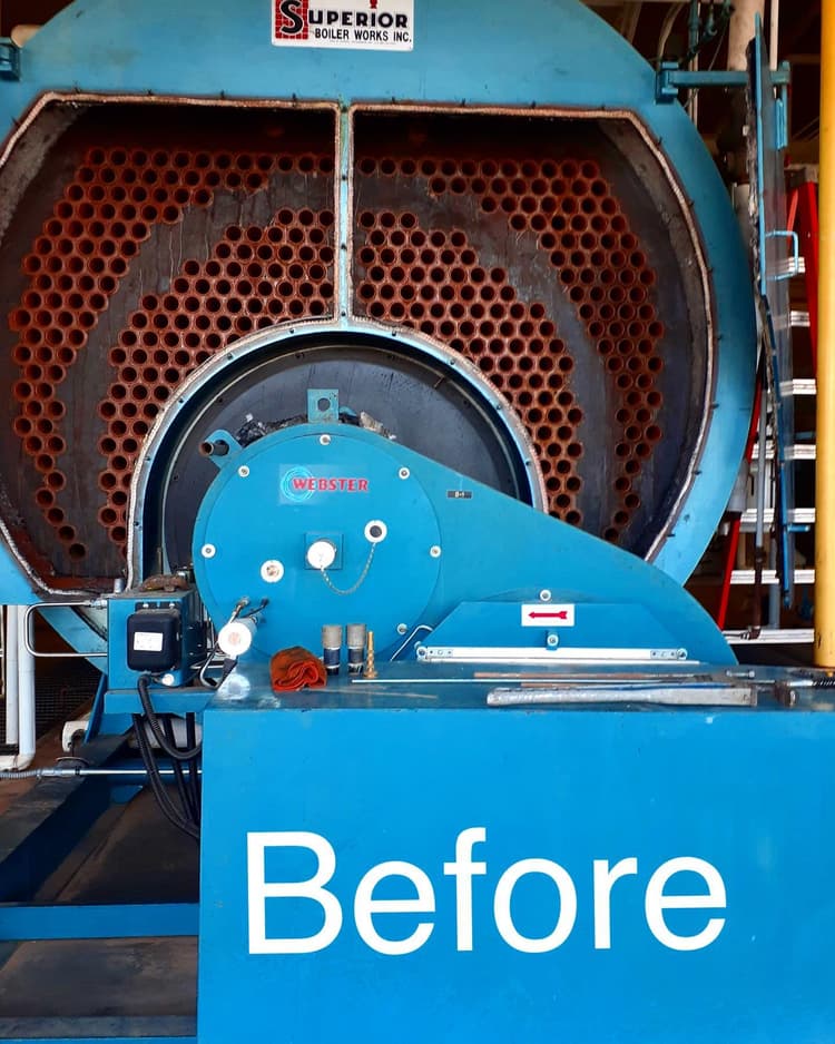 Additional scope included replacement of boiler floats, wiring, and Schedule 80 seamless steel piping with forged threaded fittings, all documented per code with material tracking reports. Existing door insulation was replaced with new high-temperature insulation, stainless steel screens, keepers, and pins. Each boiler received new flat glass gauge assemblies, tri-cock assemblies, and Autoflame TDS probes with automatic top skimmer assemblies. The project concluded with system startup, burner tuning, and operator training. Shoutout to our Kearney Boiler Repair Team for the great work!